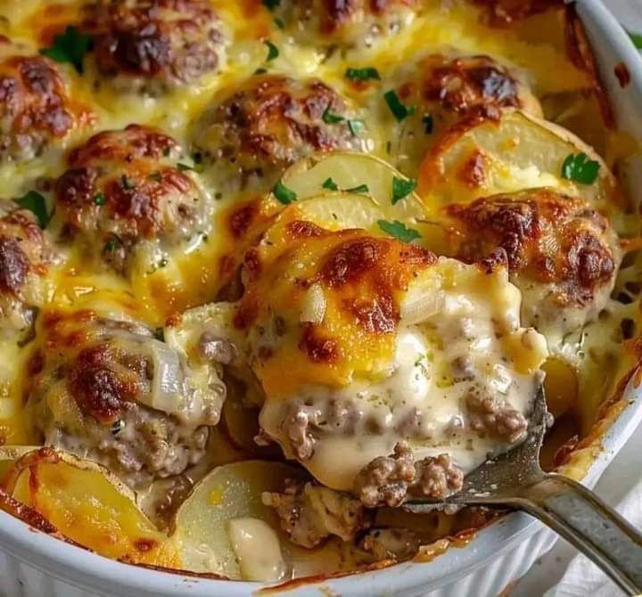 This Meatballs with Potatoes and Cheese dish is filling, cheesy, and perfect for a family dinner. The crispy potatoes and juicy meatballs make an irresistible combination. 🍽️🧀